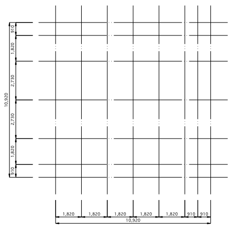 通り芯と寸法線を作成するスクリプトです。ユーザーはスパン間の数値を設定します。